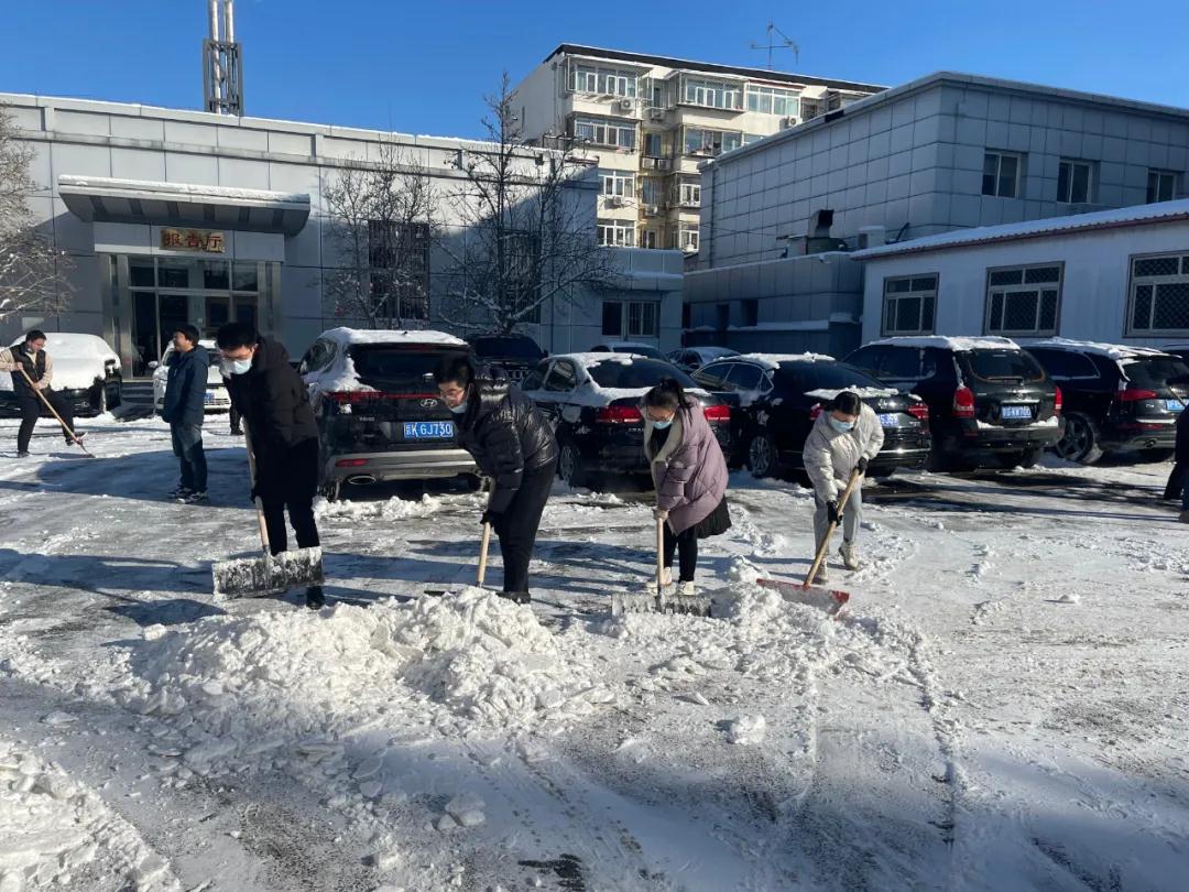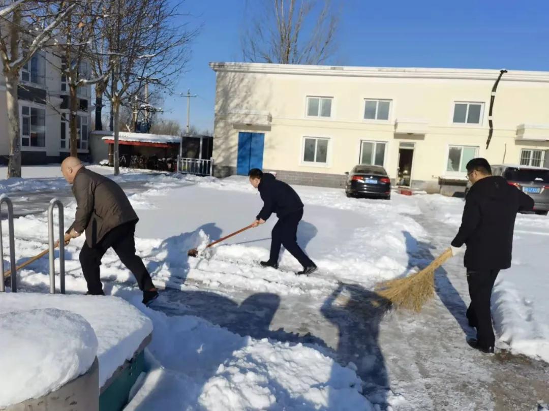 掃雪現(xiàn)場,黨員干部帶頭沖在最前面,不畏嚴(yán)寒,大家齊心協(xié)力,配合默契。經(jīng)過大家的共同努力,辦公場所及周邊道路的積雪得到了清除,職工道路交通出行安全得到了保障。