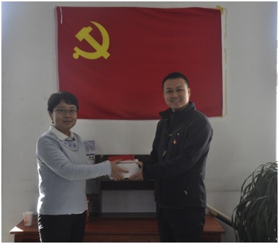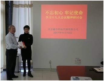 副經(jīng)理王珺向北京鑫中招標(biāo)代理有限公司黨支部贈(zèng)送學(xué)習(xí)資料。