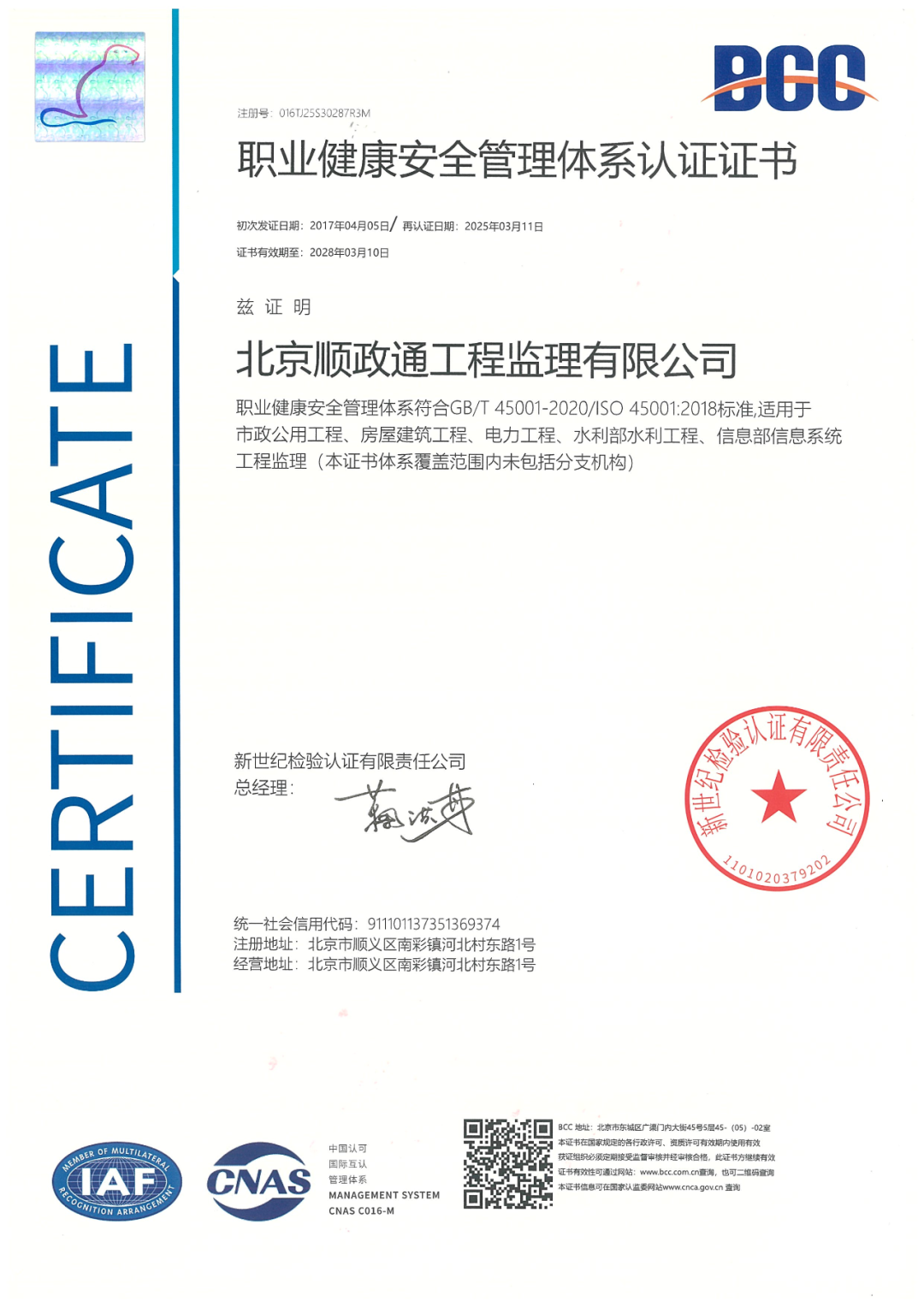 三月初,北京順義建設(shè)投資服務有限公司(簡稱:順義建投)下屬順政通公司順利通過新世紀檢驗認證公司專家審核組綜合管理體系再認證審核,取得新版認證證書
